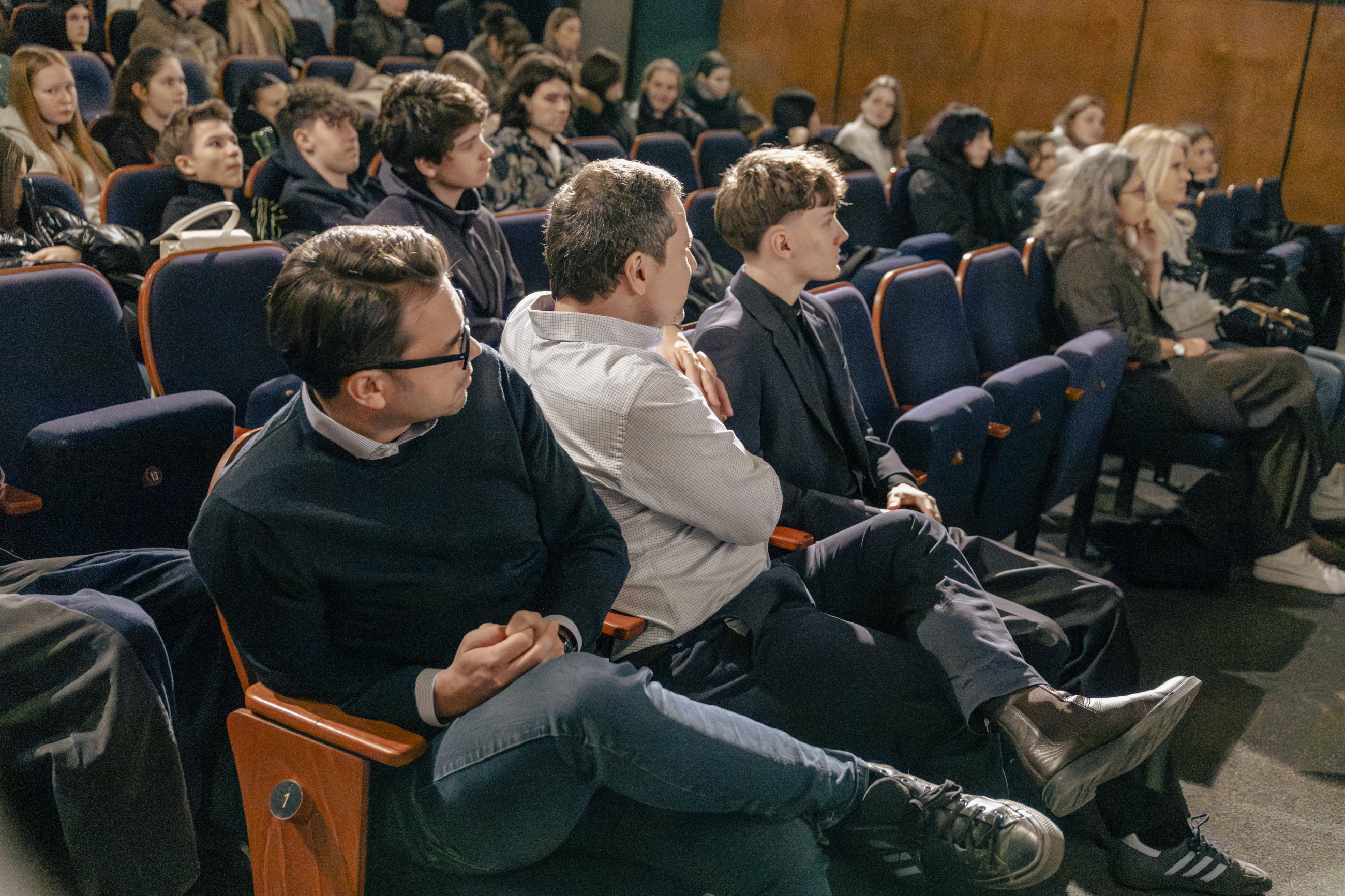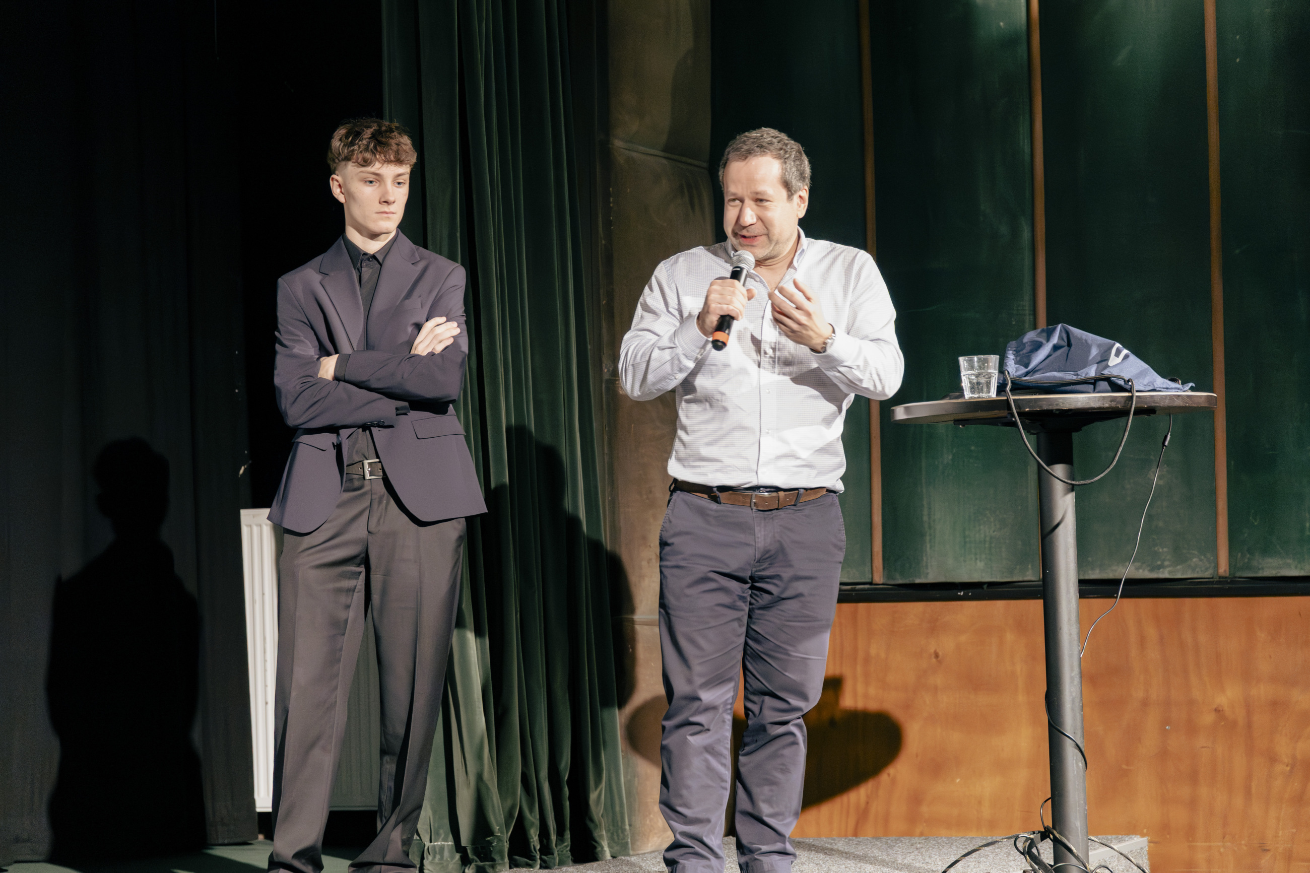 Celým dopolednem provázeli student třetího ročníku Antonín Pomahač a Michal Rozsypal, zkušený moderátor a novinář. Společně se ujali role moderátorů akce, kladli hostům podnětné otázky a citlivě vedli diskusi tak, aby byla pro studenty srozumitelná, inspirativní a přirozeně navazovala na jednotlivá témata.