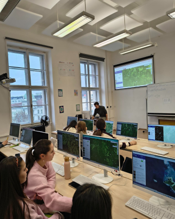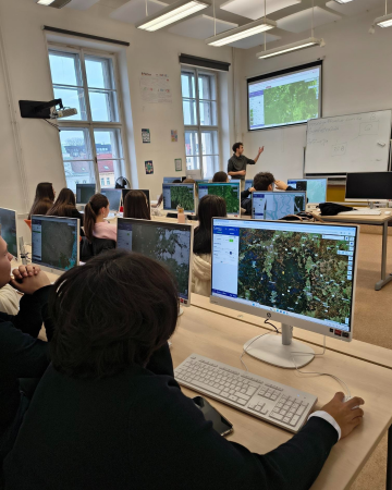 Školu navštívil pan Jakub Nosek, který studentům představil nástroj Copernicus Browser. V tomto prostředí zpracovávali a analyzovali data týkající se úbytku lesních porostů v důsledku kůrovcové kalamity. Výsledkem jejich práce byla srovnávací analýza stavu lesů před a po kalamitě.
