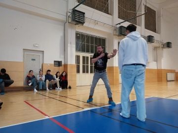 Zajímavé pojetí sebeobrany připravil pro Fostru akreditovaný instruktor Jiří Hraba (příslušník ozbrojených sil AČR). Tento profi trenér, odborník pro boj na ulici, sebeobranu a ochranu VIP osob, společně se studenty prošel různé modelové situace a názorně ukázal několik chvatů, jimiž obohatil i dobrovolníky z našich řad = figuranty v roli útočníka.