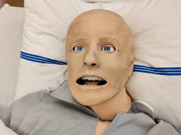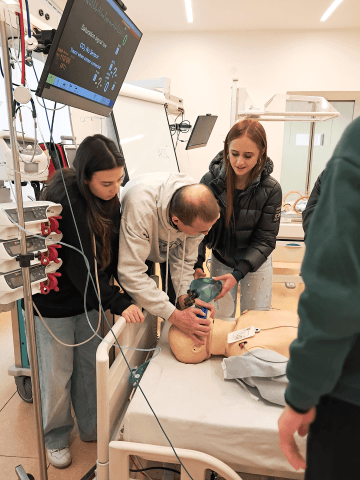 Nácvikové figuríny, které běžně využívají profesionální záchranáři, umožňují realistický trénink pomoci druhým lidem. Napodobují dýchání, pulz, reakce na dotek i pocení a slouží k bezpečnému nácviku zásahů v různých zdravotních situacích – od každodenní péče až po akutní stavy, jako jsou dechové potíže, vysoký krevní tlak nebo resuscitace. Nyní si toto mohli vyzkoušet i naši studenti.