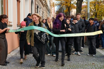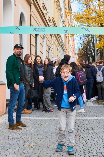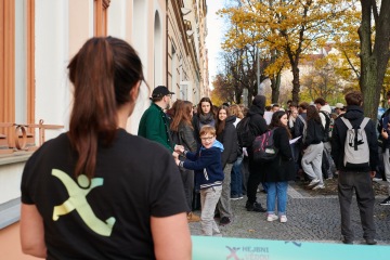 Součástí programu byla také odborná přednáška v Kinu Aero, kde Mgr. Jan Procházka, Ph.D., představil současný výzkum vzácných onemocnění. Studenti zároveň mohli projekt podpořit nákupem zdravých svačinek za symbolickou částku a také zakoupením merche projektu Hejbni vědou!