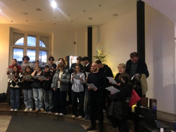 Večer začal vřelým přivítáním a následným hudebním vystoupením studentů, kteří spolu se dvěma kolegy zazpívali tři vánoční písně. Jejich vystoupení sklidilo zasloužený aplaus a navodilo tu pravou sváteční náladu.