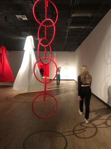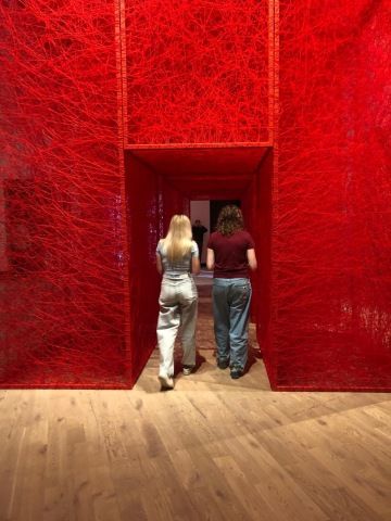 Tato návštěva byla nejen inspirativní, ale i poučná, a nabídla studentům možnost hlubšího zamyšlení nad vlivem umění na vnímání světa a nás samotných. Vlákna v jejích pracích symbolizují různé druhy spojení – krevní cévy, lidské vztahy či místní vazby. Shiota splétá poetické světy, v nichž osobní historie rezonuje s kolektivní pamětí. Jak sama říká, "kreslí v prostoru“, aby zhmotnila „přítomnost v absenci“.