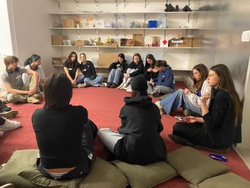 Studenti absolvovali výtvarný program v Galerii DOX na téma výstavy Kafkaesque. Od lektorky dostali úvodní komentovanou prohlídku, kterou zakončili svými reflexemi.
