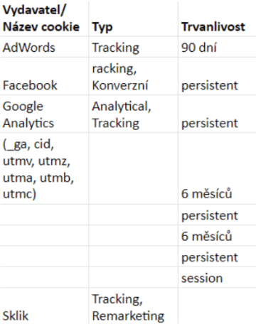 Jaké soubory cookie používáme